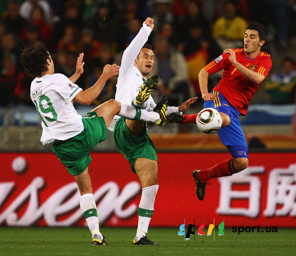 Что ж до испанских атак, то им явно не хватало свежей мысли. Торрес, как и во всех предыдущих матчах, разочаровывал. Вилью, Иньесту и Хави окружили жесточайшим прессингом, действовать в котором им было ой, как неудобно. Хотя даже в этих условиях и Вилья, и Хави умудрялись опасно пробивать по воротам Эдуардо.