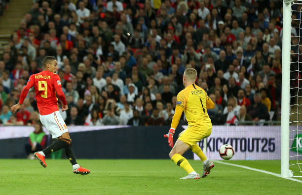 Однако недолго продолжалось ликование подопечных Саутгейта. Уже в следующей атаке Родриго сыграл менее изящно, нежели оппонент, однако ровно с таким же исходом: Сауль замкнул его прострел с правого фланга вдоль линии штрафной ударом в одно касание.